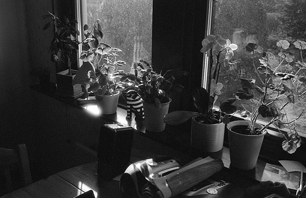 Kitchen sun. The storms have left a film of salt on the windows, but the sun makes it through.