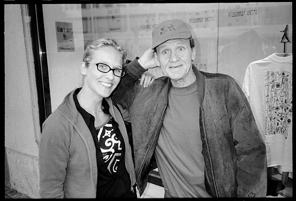sober than Sofia and I. Yashica T4 with fill-in flash. Ilford HP5+, D76 1:1. HP S20 scanner. |