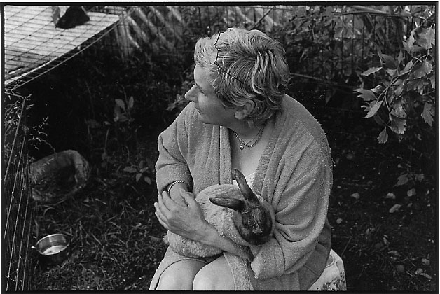 | This little guy, Harry, demands that we come out and hold him when we wake up in the morning, like a ceremony to mark the the night's dangers are over. I've ignored him a couple of times to see what happens. He stomps on the ground and gets bent out of shape. So Ewa and I take turns. I kind of understand his concern. Last year I looked out and there was a fox heading his way. |