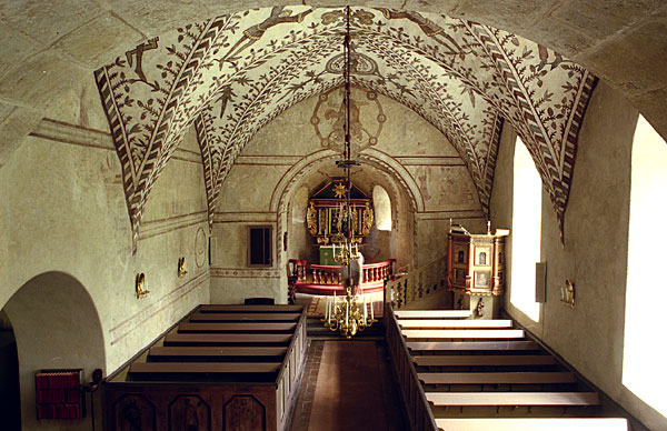 Gökhem Before I left for Zimbabwe I wanted to make sure my equipment was working properly. (I took Nikon F3's besides one Leica). Out to the churches. These paintings are about 500 years old. I'm at the very back of the church with a 28mm lense. It's not a big one, but it's still used today. The film is Fujipress 400 and the negative has been scanned with an Epson 2450, due to lightening clobbering my film scanner. |