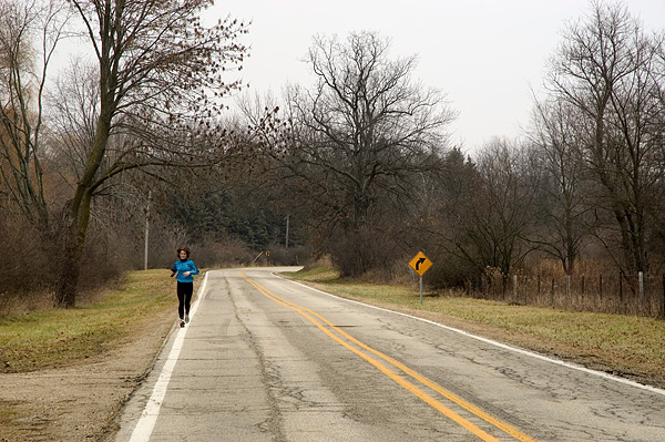 This is Karen's road. She is a serious long distance runner.