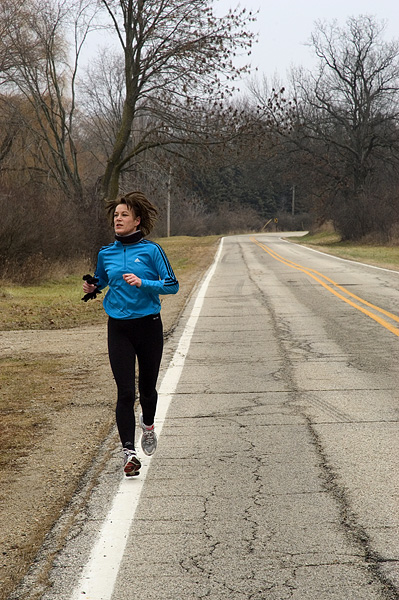This is Karen's road. She is a serious long distance runner.